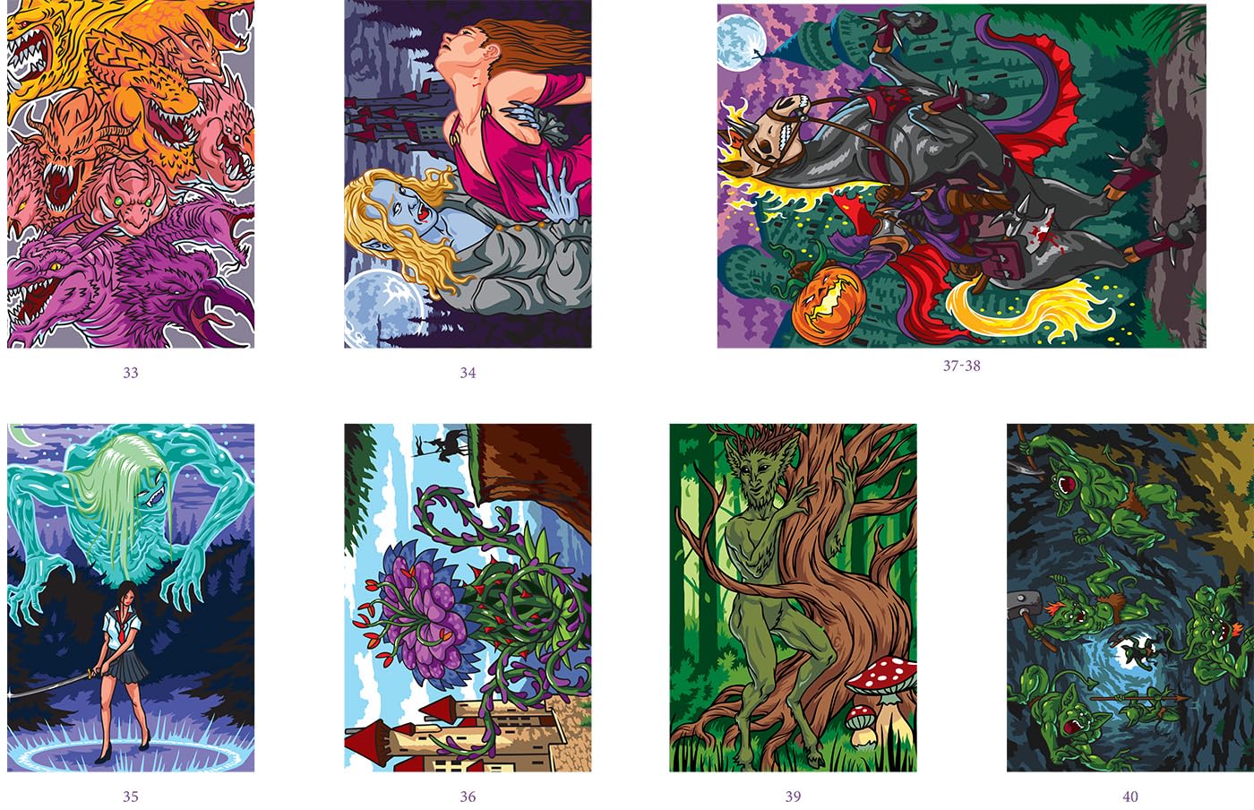 Dive into breathtaking fantastic worlds, follow the color codes, and watch original artworks come to life as you color. Each illustration is designed to offer both artistic discovery and deep relaxation.