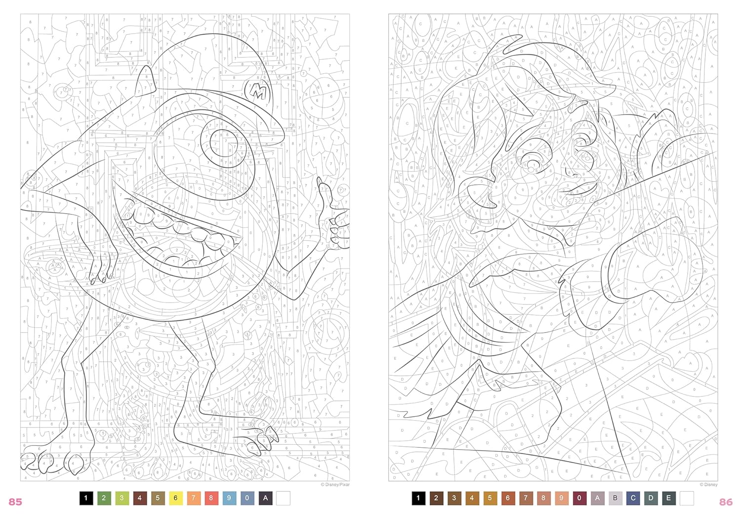 Using the magic of trompe l’oeil (optical illusion) combined with color by number, each page gradually reveals adorable Disney baby characters in a fun and eye-catching way.
