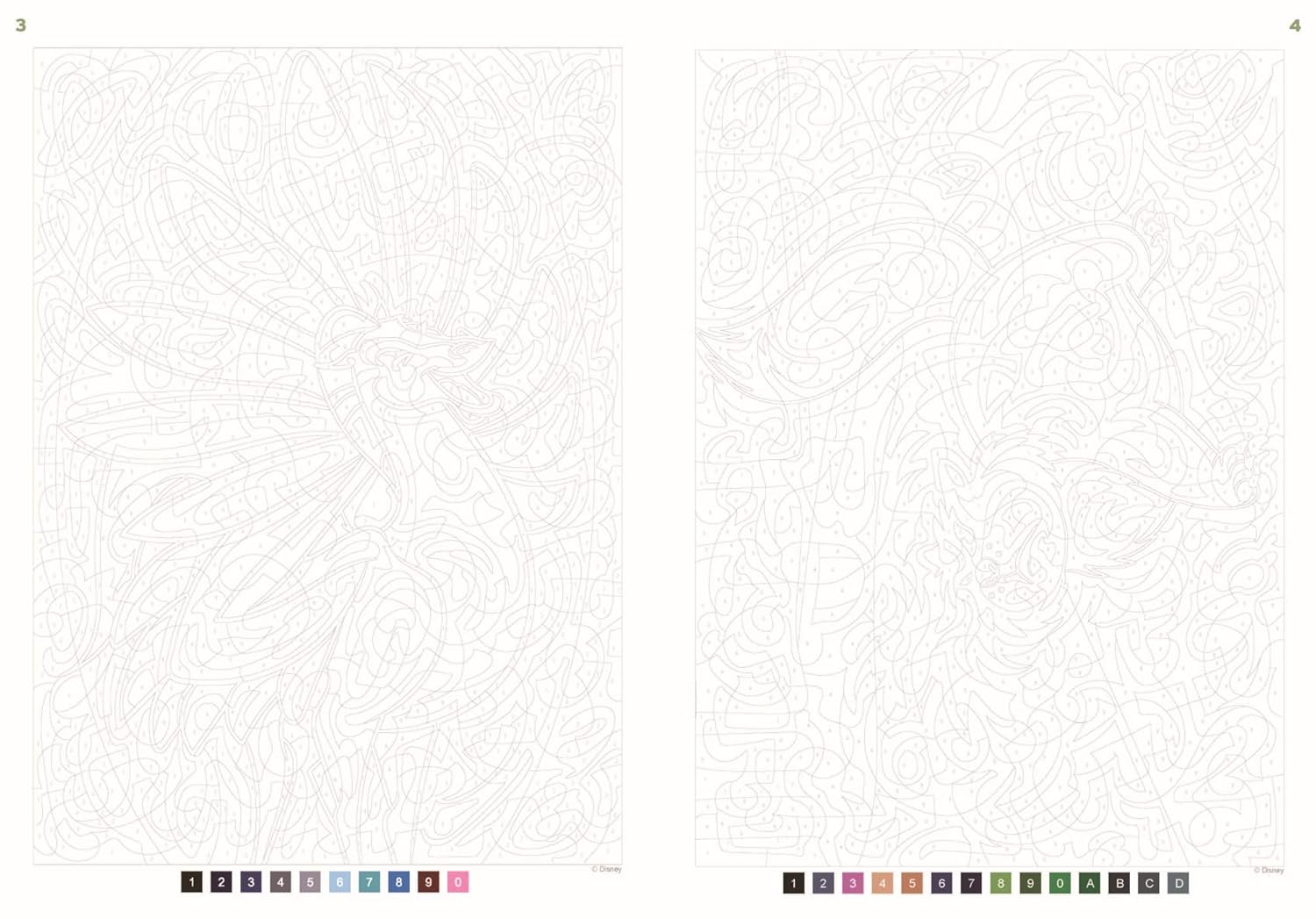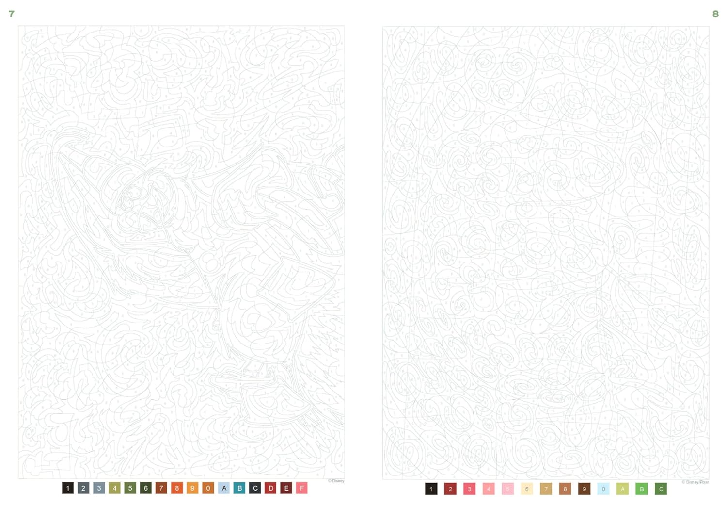 Color by number – follow the color code to reveal a stunning Disney illustration!
